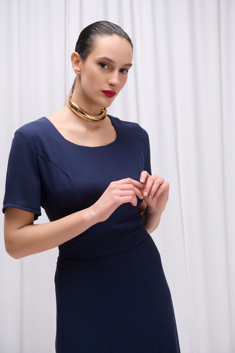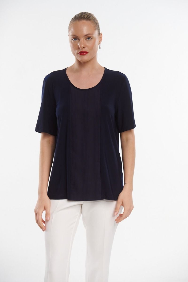 Ελαστική μπλούζα με μουσελίνα μπροστά (Μπλε)