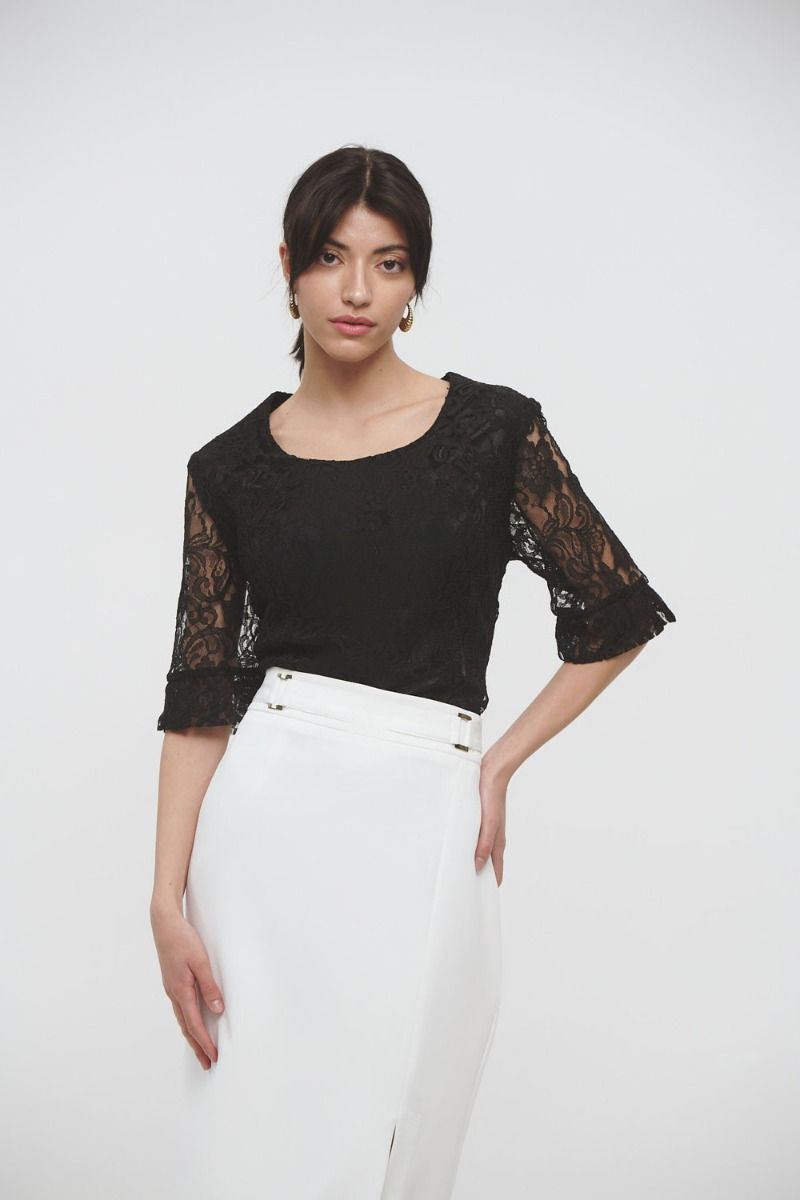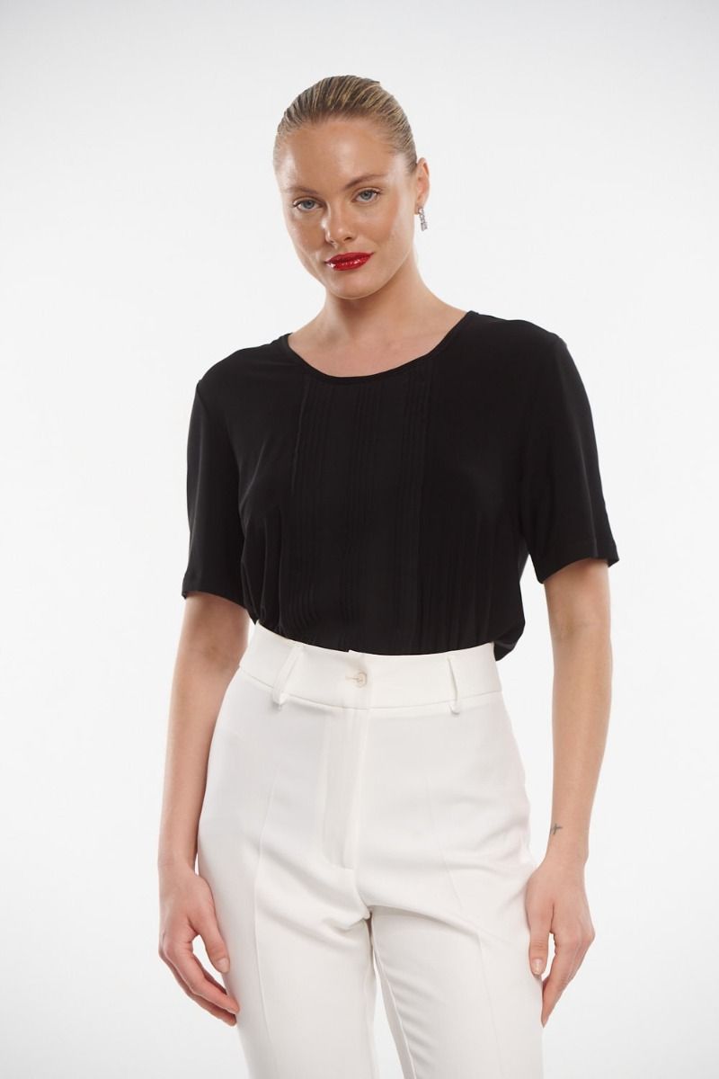 Ελαστική μπλούζα με μουσελίνα μπροστά (Μαύρο)