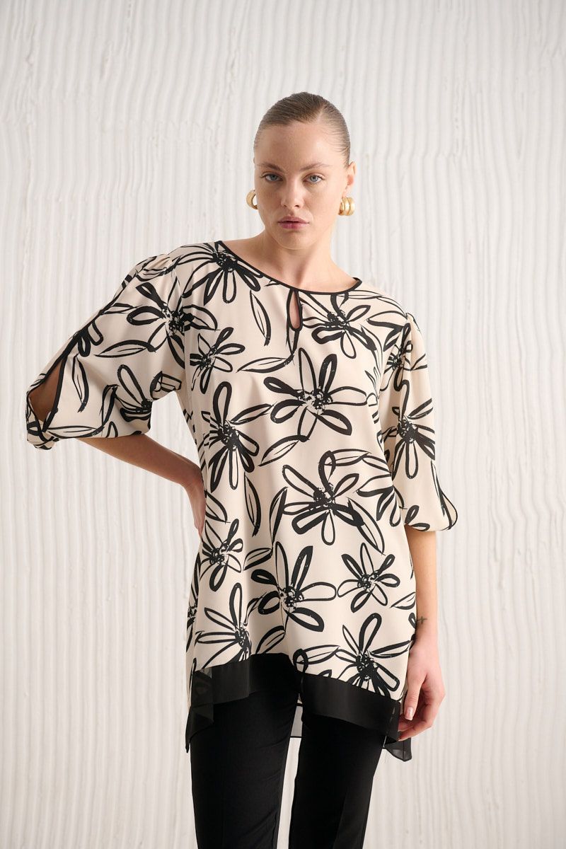 Ασύμμετρη μπλούζα με ανοίγματα στο μανίκι