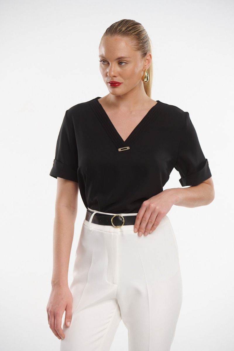 Μπλούζα με ιδιαίτερη V λαιμόκοψη (Μαύρο)