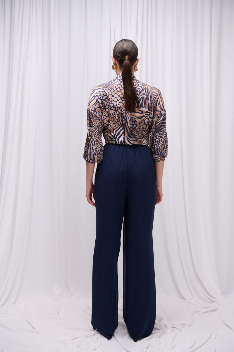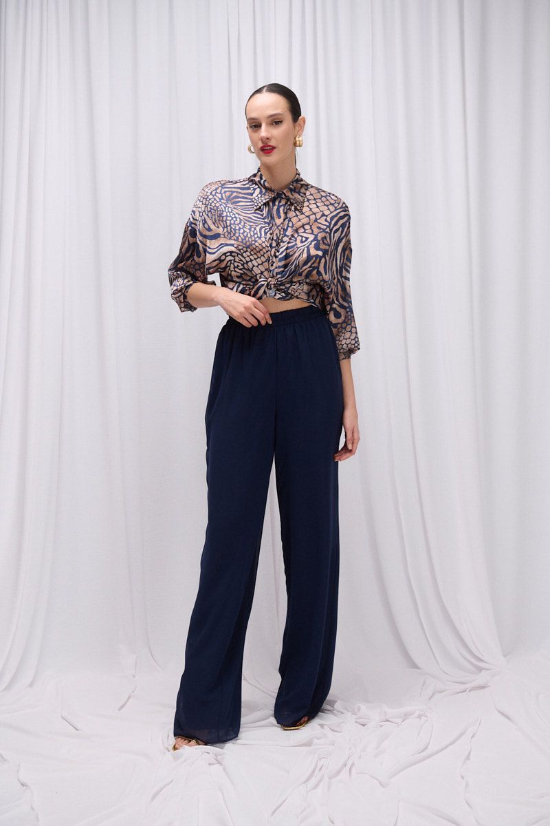 Πουκάμισο animal print με γιακά, σατέν υφή, μακρύ μανίκι με μανσέτα και κουμπί, κλείσιμο μπροστά με κουμπιά που καλύπτονται από πατιλέτα.