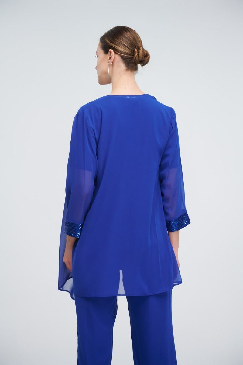 Σετ ζέρσεΐ κοντομάνικη μπλούζα με παγιέτες στη λαιμόκοψη και μουσελίνα τουνίκ με παγιέτα στα τελειώματα.